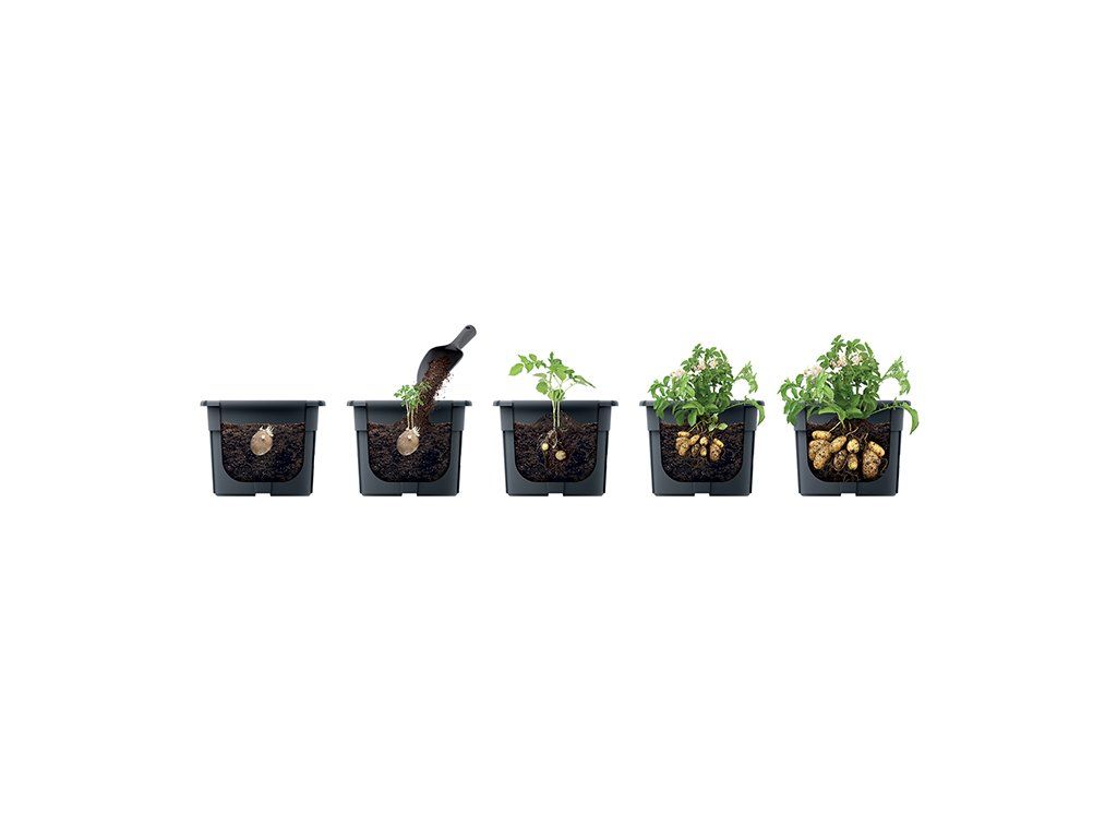 Pěstujte brambory u sebe doma. Pokud bydlíte například v panelovém bytě nebo nemáte u rodinného domu zahrádku a chcete si vypěstovat vlastní brambory, zkuste tento květináč Prosperplast Potato Grower o rozměrech 29,5 x 29,5 x 23,6 cm. Jedná se o květináč z kvalitního plastu s promyšleným designem a objemem 12 l.