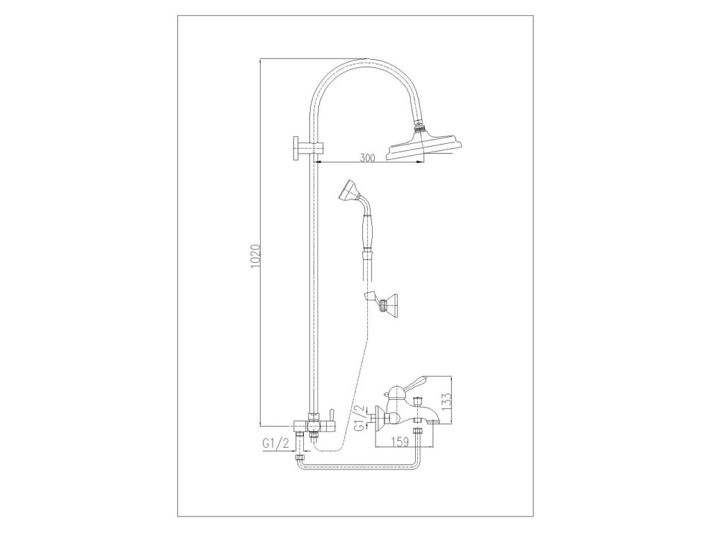 Vodovodní baterie vanová LABE s hlavovou a ruční sprchou se skládá z: