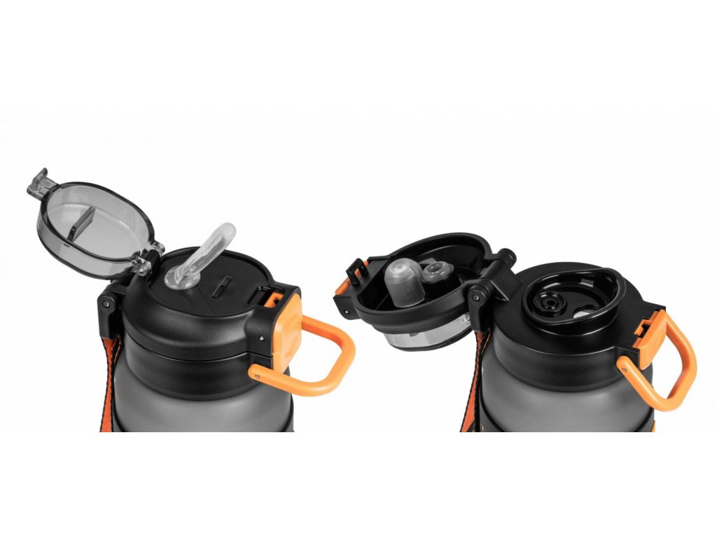 Silikonový kroužek po obvodu sportovní lahve zajišťuje, že láhev v ruce neklouže.Tento detail přispívá k bezpečnému a komfortnímu držení, což oceníte zejména při sportu nebo na cestách nebo při sportování, když máte mokré či zpocené ruce.