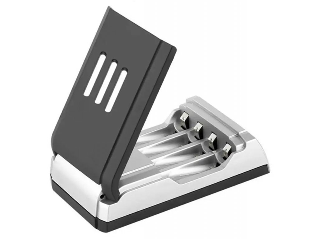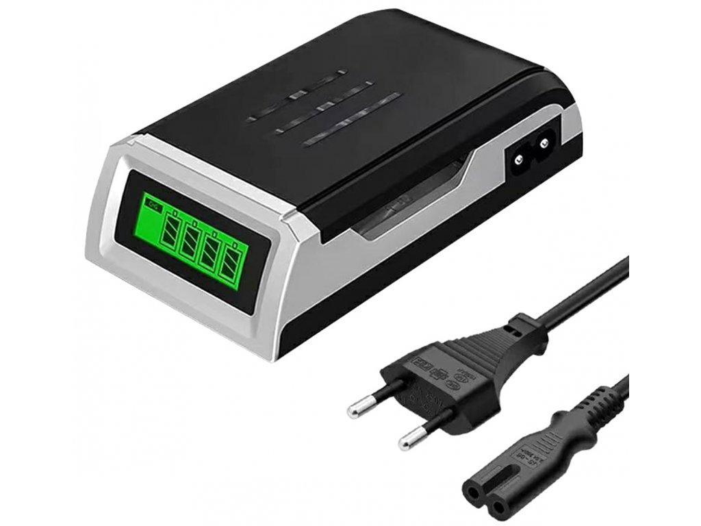 Kompaktní nabíječka pro baterie AA a AAA. Dokáže nabíjet čtyři baterie stejného typu současně. Přehledný LCD displej zobrazuje úroveň nabití baterie a dobu nabíjení nebo jakoukoli chybu. Zařízení je napájeno elektřinou 230V pomocí přiloženého kabelu. Klapka v horní části zařízení chrání články během nabíjení.
