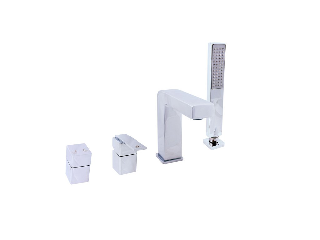 Vodovodní baterie vanová stojánková čtyřotvorová s keramickým přepínačem, samonavíjecí 2m hadicí a sprchou.