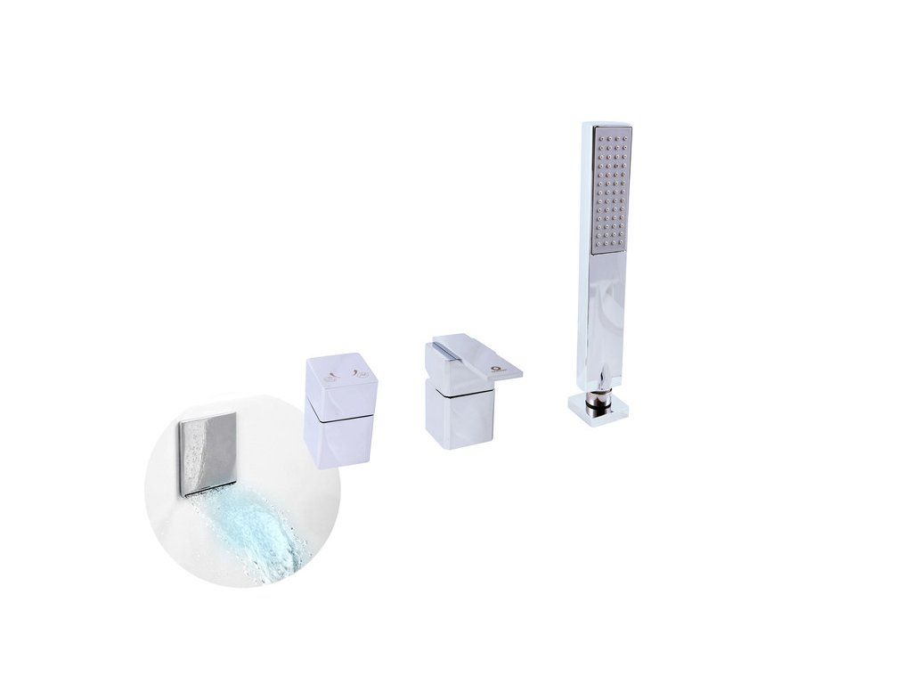 Vodovodní baterie vanová stojánková čtyřotvorová s keramickým přepínačem, samonavíjecí 2m hadicí a sprchou.