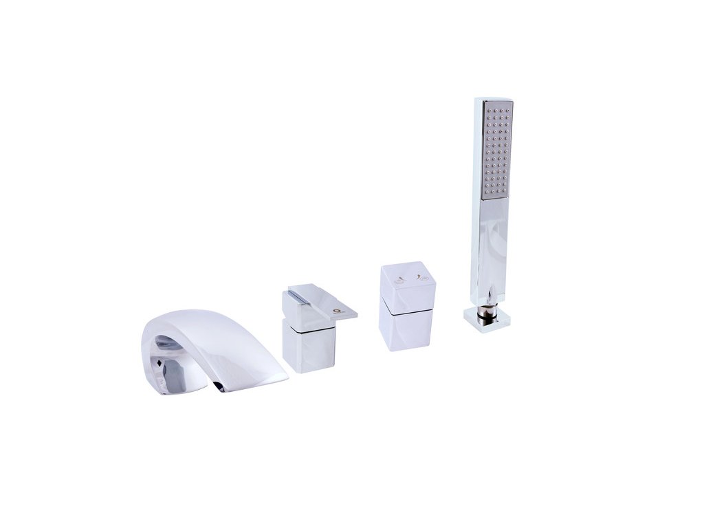 Vodovodní baterie vanová stojánková čtyřotvorová s keramickým přepínačem, samonavíjecí 2m hadicí a sprchou.