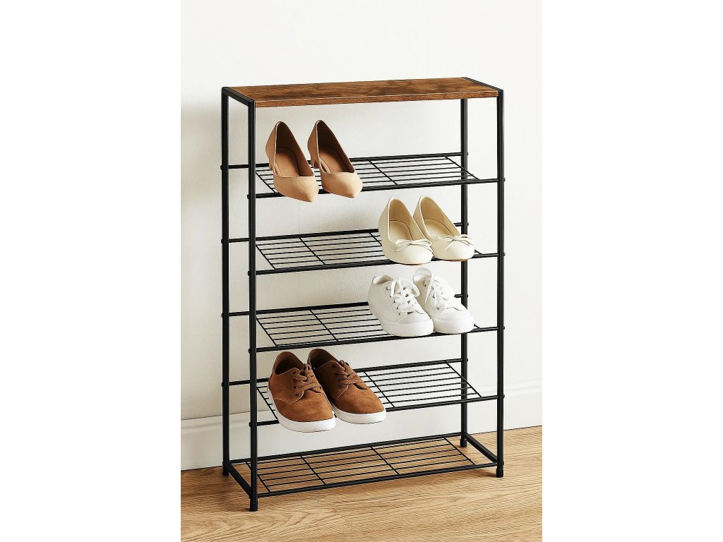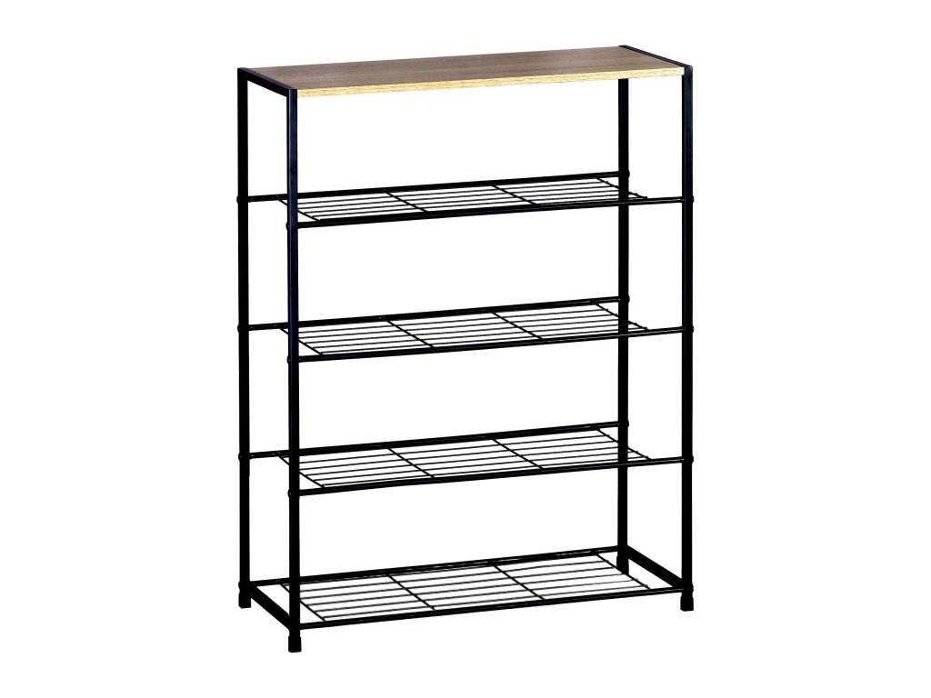 Tento všestranný pětipatrový regál je praktickým řešením pro uložení bot, knih nebo bytových doplňků. Jeho robustní konstrukce z kovových tyčí a vrchní deska z imitace dřeva mu dodávají moderní industriální vzhled. Díky kompaktnímu designu se perfektně hodí do chodby, šatny nebo obývacího pokoje. ROZMĚRY: 63x30x83CM. Maximální nosnost police: 3kg.