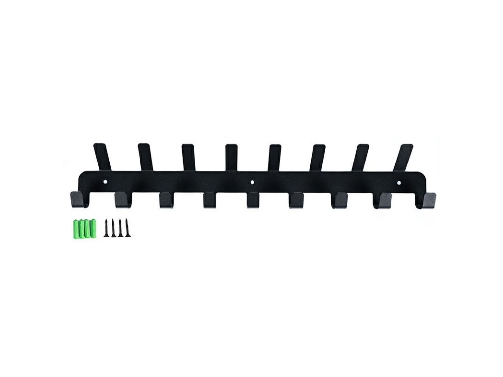 Vysoce kvalitní nástěnný věšák z odolné uhlíkové oceli. Specifikace: Rozměry (šířka/výška/hloubka): 48,3x9x3cm, 17 ocelových háčků, upevnění pomocí přiložených kolíků, materiál: uhlíková ocel
