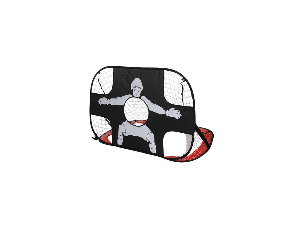 Master Pop Up Set je sada dvou přenosných skládacích branek vhodných pro všechny hráče a fanoušky nejen fotbalu, ale i různých druhů míčových her. Výjimečnost této branky spočívá v tom, že na jedné straně branky je plachta, vykrývající určitá místa v brance pro obtížnější vstřelení gólu. Na plachtě je vyobrazený brankář, který má za úkol rozptylovat útočníka. To nutí hráče soustředěnosti a přesného míření doprostřed, do šibenice nebo k tyči. Po překlopení branky je opět branka bez brankáře a vy můžete střílet kamkoliv. Branka se skvěle hodí pro uspořádání dovednostních her a trénování střelby. V balení naleznete dvě branky pro hru s více hráči. Takže může pořádat zápasy proti svým kamarádům. Balení dále nabízí vzpěry které zajišťují stabilitu branky a kovové kolíky, které vám pomohou branku ukotvit k zemi. Vzhledem k nízké hmotnosti a méně robustní konstrukci, doporučujeme používat molitanový nebo měkčený míč. Velikost branky: 120 x 80 x 80 cm.