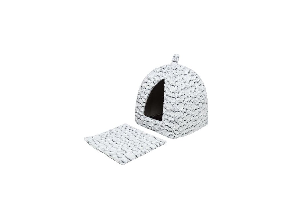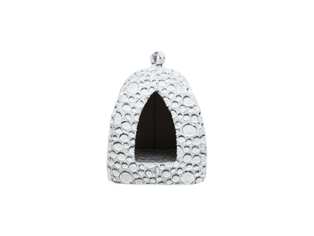 MILA plyšová jeskyňka s polštářem, 32 × 42 × 32 cm, bílá/šedá