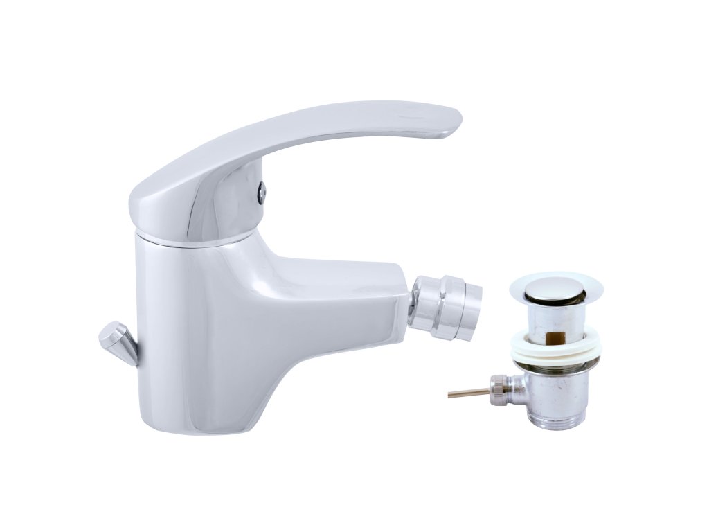 Vodovodní baterie bidetová stojánková s otvíráním odpadu.