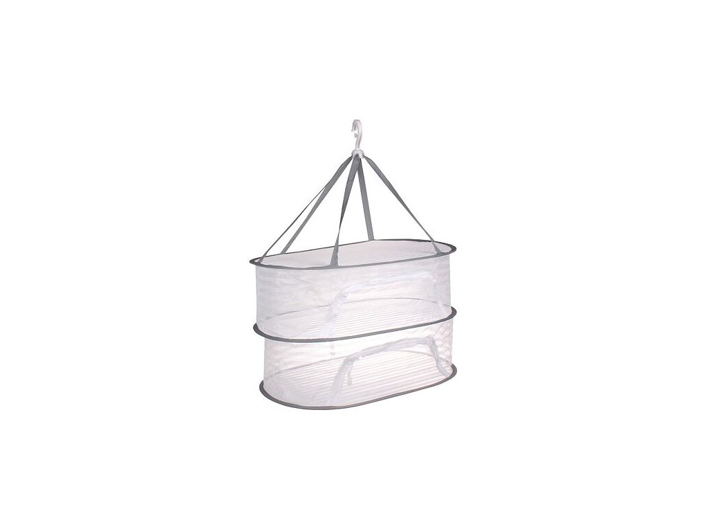 Závěsná oválná síť pro sušení bylinek, květin, ovoce a hub. Dvoupatrová. Rozměry 40x60x40 cm