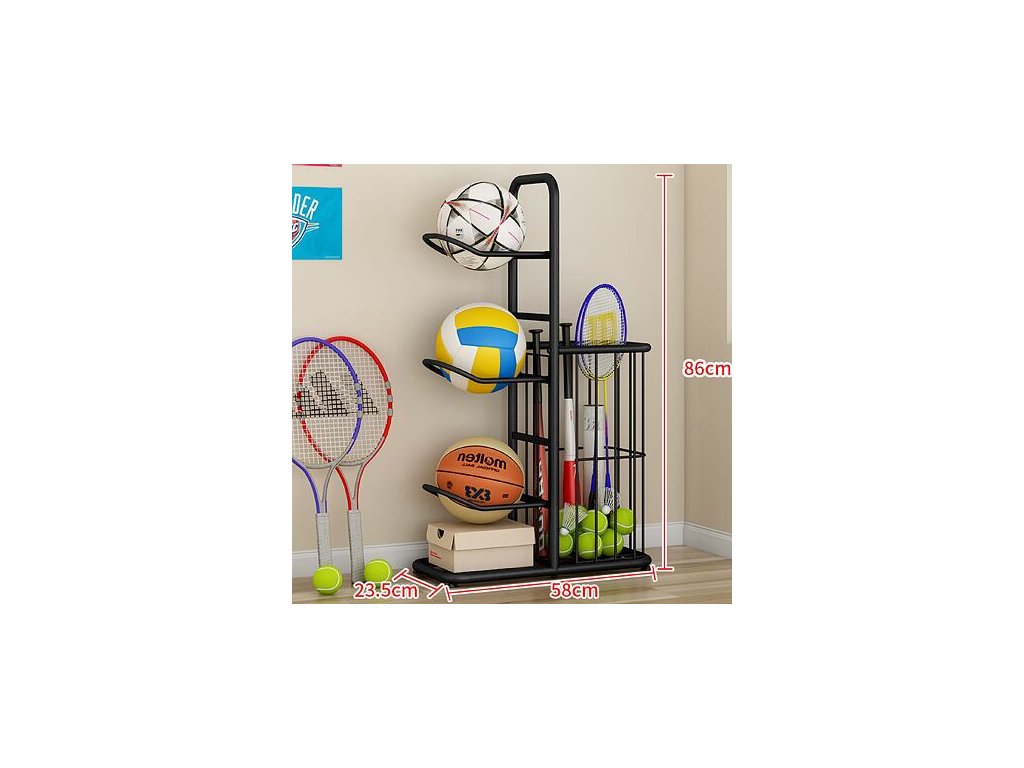 Menší multifunkční stojan pro sportovní vybavení a hračky. Praktická pomůcka do domácnosti a pro sportovní kluby.