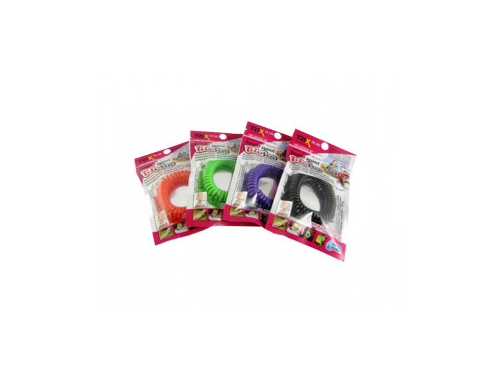 Náramek je vysoce a dlouhodobě účinný ochranný repelentní prostředek na odpuzování komárů. Má svěží vůni Citronely (olejový extrakt) a obsahuje složky, které odpuzují veškerý létající hmyz. Náramek z barevného silikonu je strečový, vysoce odolný a voděodolný. Doba působení až 350 hodin. Složení: 85 % silikon, 15 % citronelový olej. Není vhodný pro děti do 3 let.
