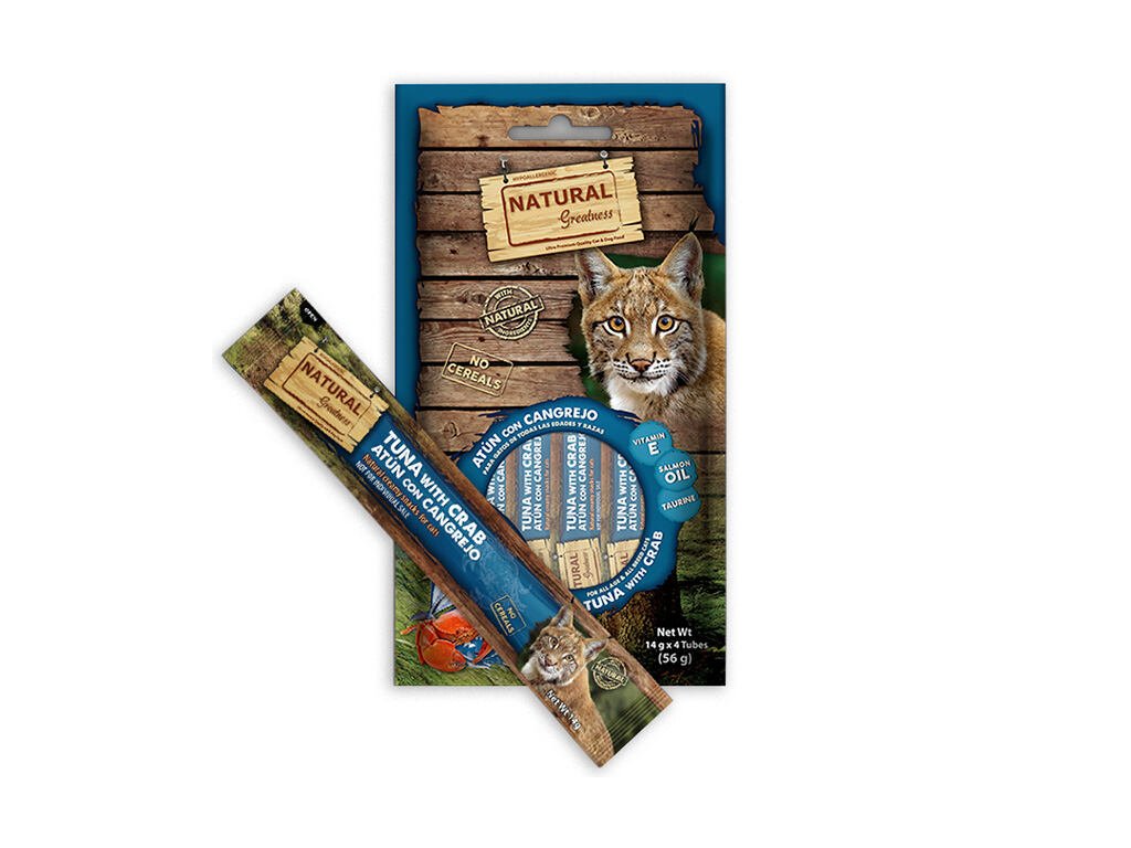 Natural Greatness Creamy HAIR & SKIN, funkční pamlsek - tuňák, krab, 4 x 14 g