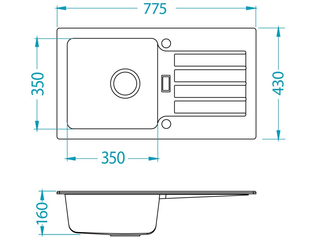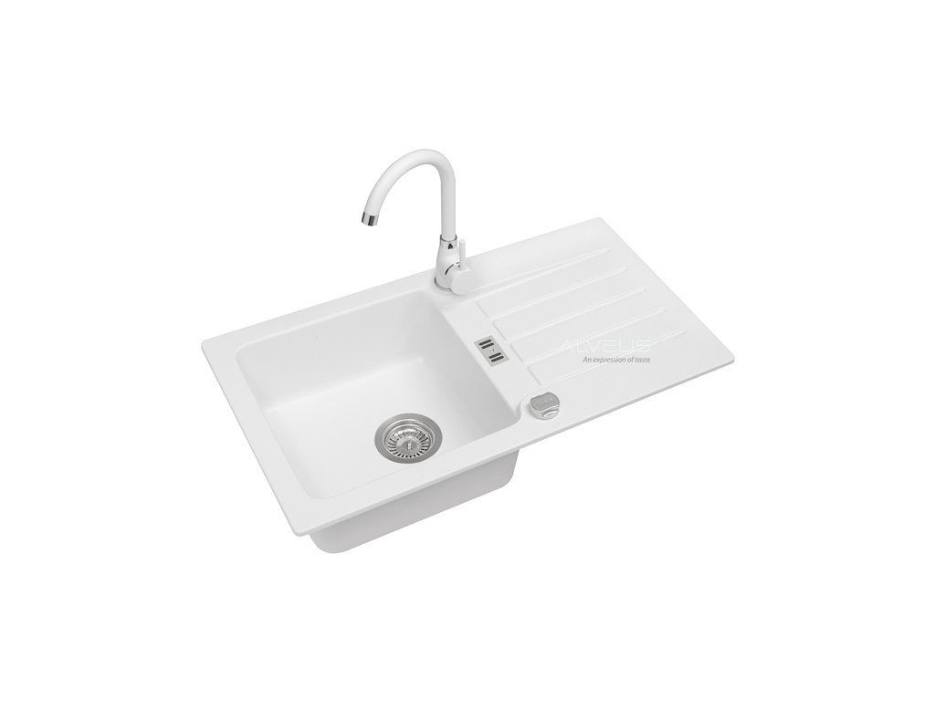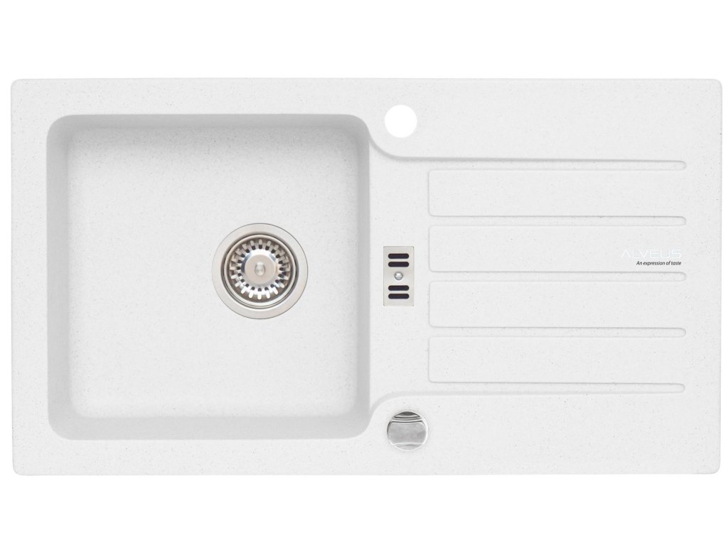 Granitový dřez Alveus Niagara 30 s odkapem určený pro montáž na desku do skříňky od 500 mm. Celkové rozměry dřezu 775 x 430 mm nabízí prostor všechny typy pro kuchyní. Součástí dřezu je excentrický sítkový ventil 3 1/2“, sifon s odbočkou na myčku a dva vyvrtané otvory pro baterii a excentrické ovládání výpusti.