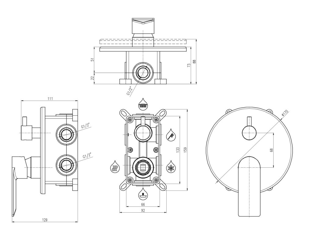 Tuto baterii můžete použít buď do sprchového koutu jako kombinaci tří prvků a nebo k vaně jako kombinaci např. napouštění přepadem, ruční sprcha a hlavová sprcha nebo výtokové ramínko, ruční sprcha a hlavová sprcha.