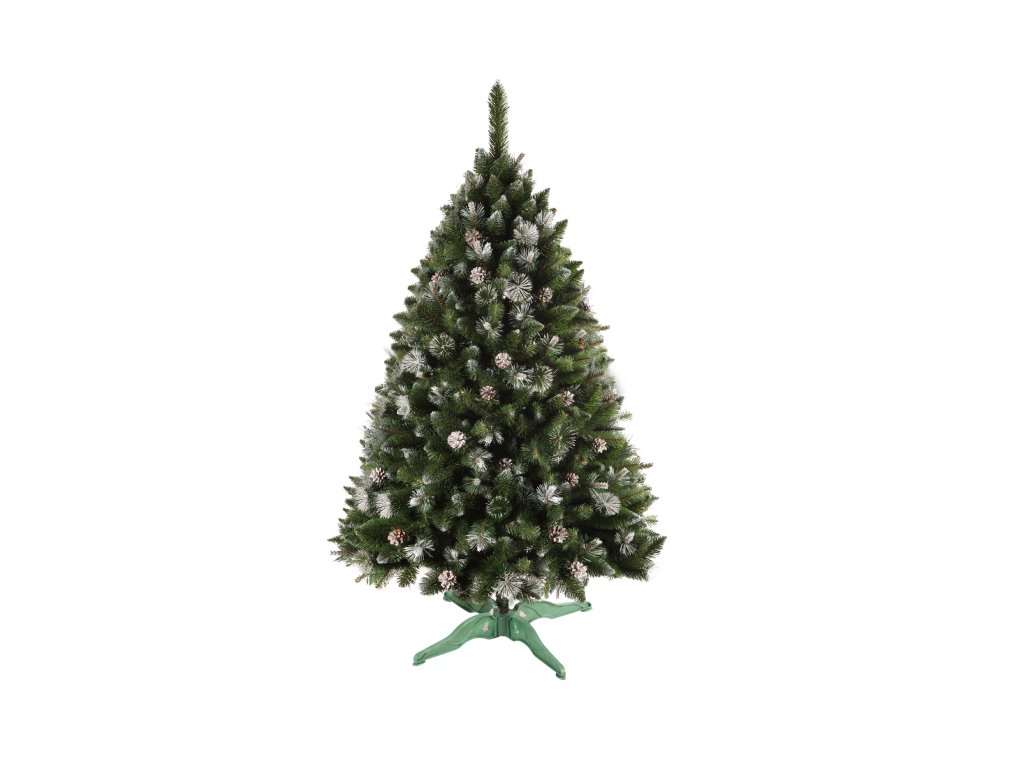 Umělý vánoční stromek je ozdoben šiškami. Konce větví mají stříbrnou aplikaci. Součástí je zelený stojánek. Jednotlivá patra má blízko nad sebou, což zajišťuje dostatečnou hustotu stromečku.