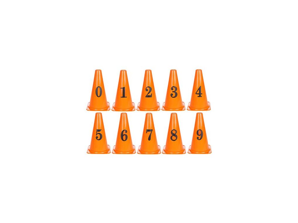 Sada 10 kuželů s čísly 0-9 pro vyznačení tréninkové dráhy nebo jako didaktická pomůcka.