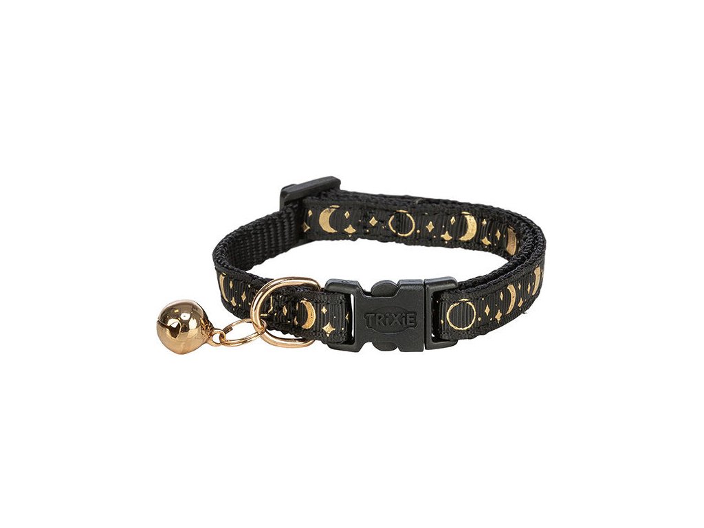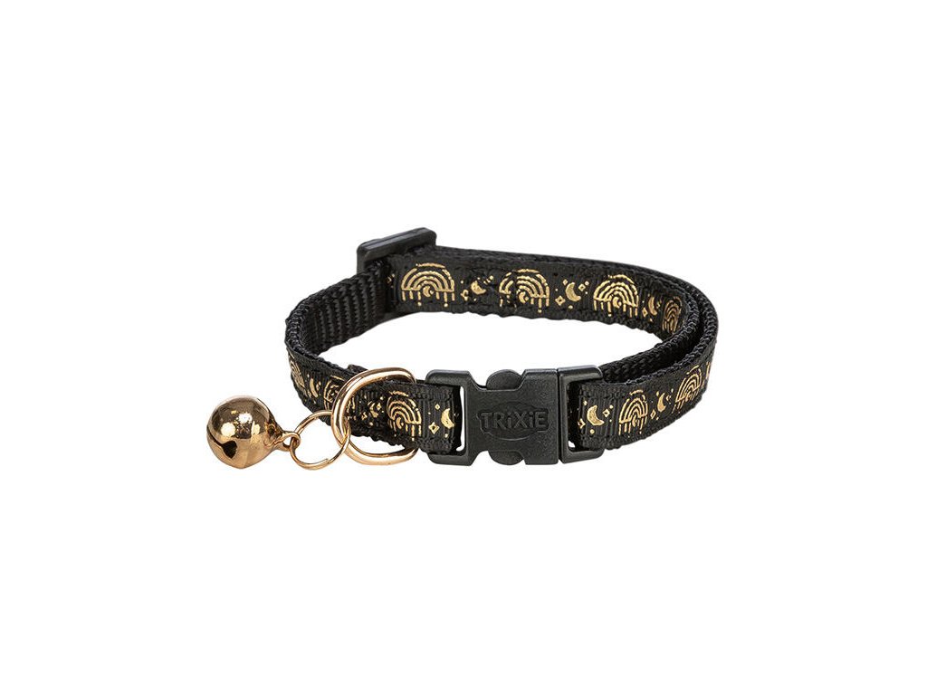 Obojek pro kočky, zlaté zdobení, s rolničkou, černá