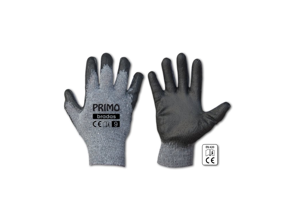 Latexové rukavice Bradas PRIMO s drsnou strukturou. Vyrobené z pletené bavlněné tkaniny - steh 10.