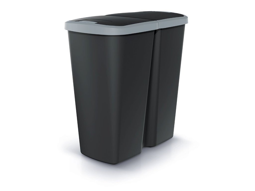 Odpadkový koš o objemu 45 l, jedna velká vnitřní nádoba, dvojité víko s tlačítkovým otevíráním, možnost uchycení 2 odpadkových pytlů pro snadné třídění.
