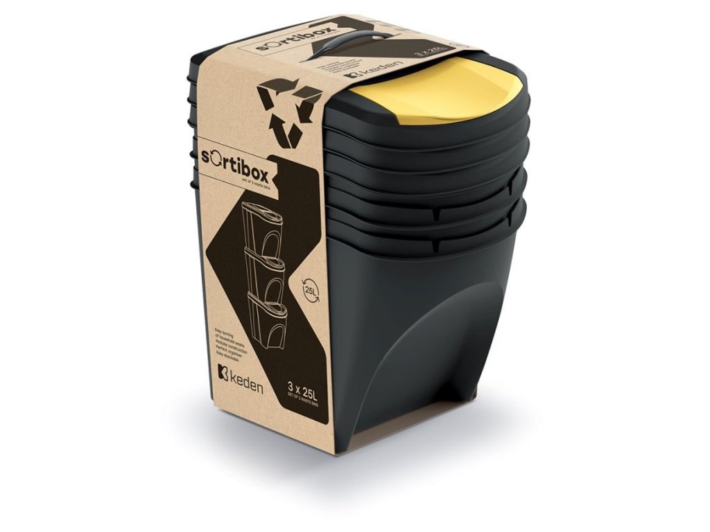 Odpadkový koš Prosperplast SORTIBOX 3 x 25 l recyklovaný černý