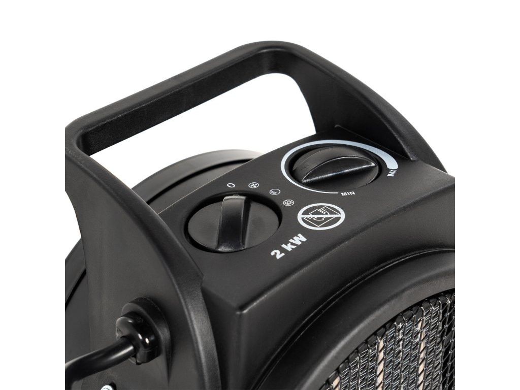 Elektrický ohřívač s výkonem 2 000 W, keramické topné těleso PTC, regulace teploty od 0 do 40 °C, tichý chod. Jednoduché ovládání, funkce ohřívače a ventilátoru, pevná a odolná konstrukce, kompaktní rozměry.