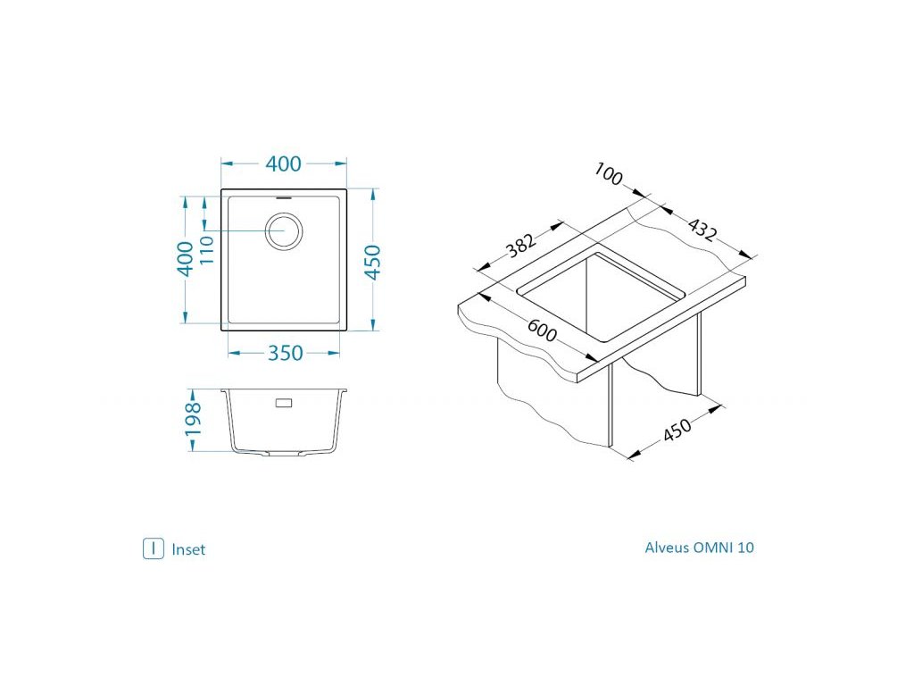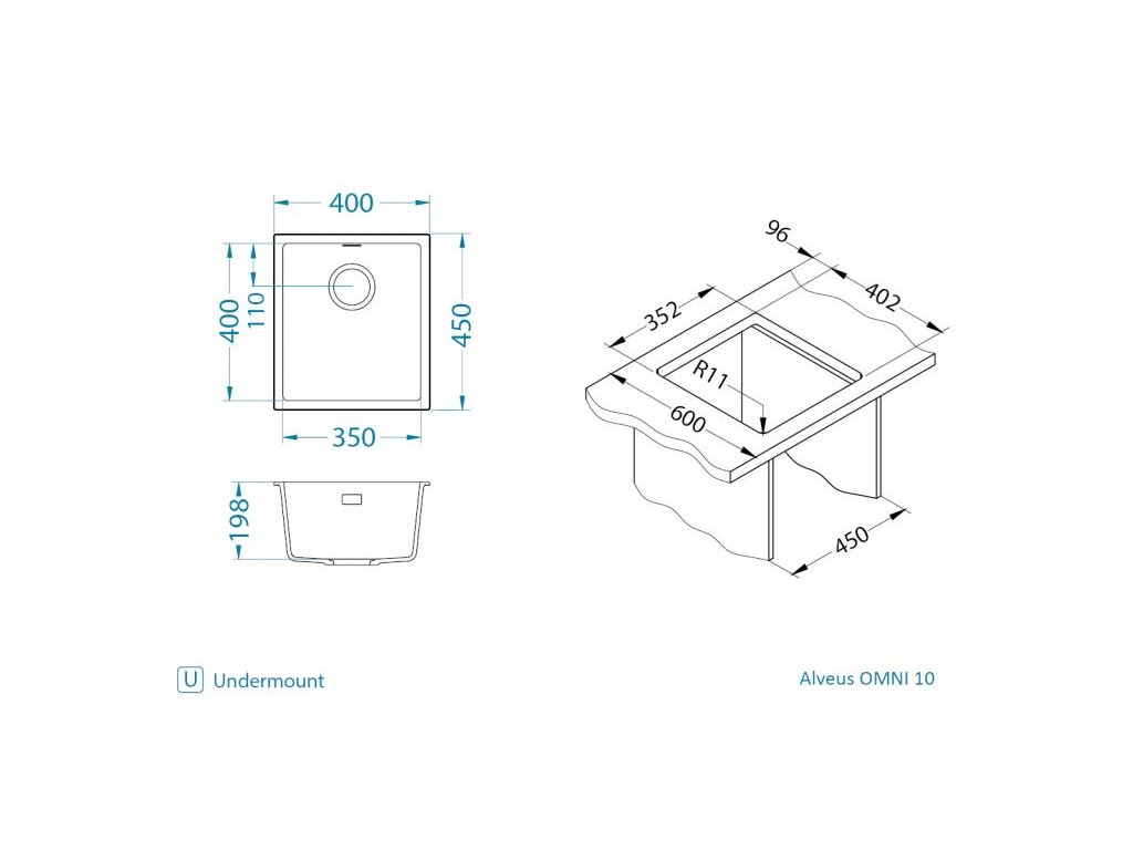 Instalace vrchní I montáž nebo spodní U, velikost skříňky 450 mm