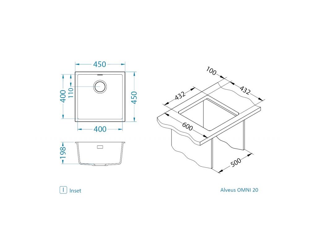 Rozměr vaničky: 450 x 450 x 198 mm