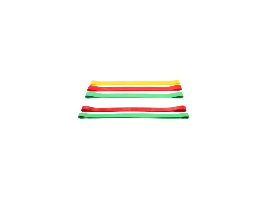 Praktická sada pěti odporových gum s různou tloušťkou a délkou na posilovací a rehabilitační cvičení. Včetně stahovacího sáčku.