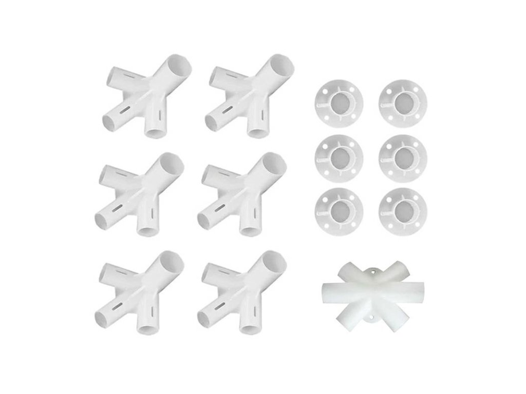 Sada spojovacích prvků pro stavbu šestihranného zahradního altánu. Tato 13dílná sada obsahuje spojovací prvky vhodné pro altány PA5 a PA6. Průměr otvoru pro sloupek: 24 mm. Průměr otvoru pro střešní trubku: 18 mm. Materiál: PVC.