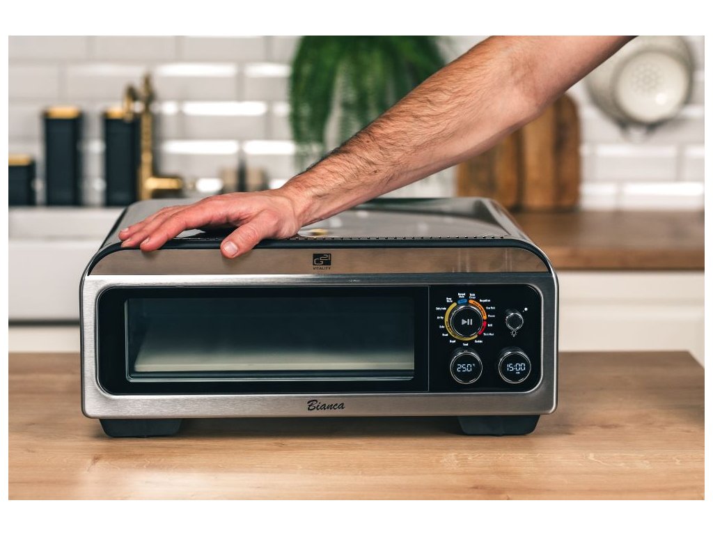 - Multifunkční využití – pizza pec, sušička, toustovač, horkovzdušná fritéza, stolní pekárna i ohřívač pokrmů