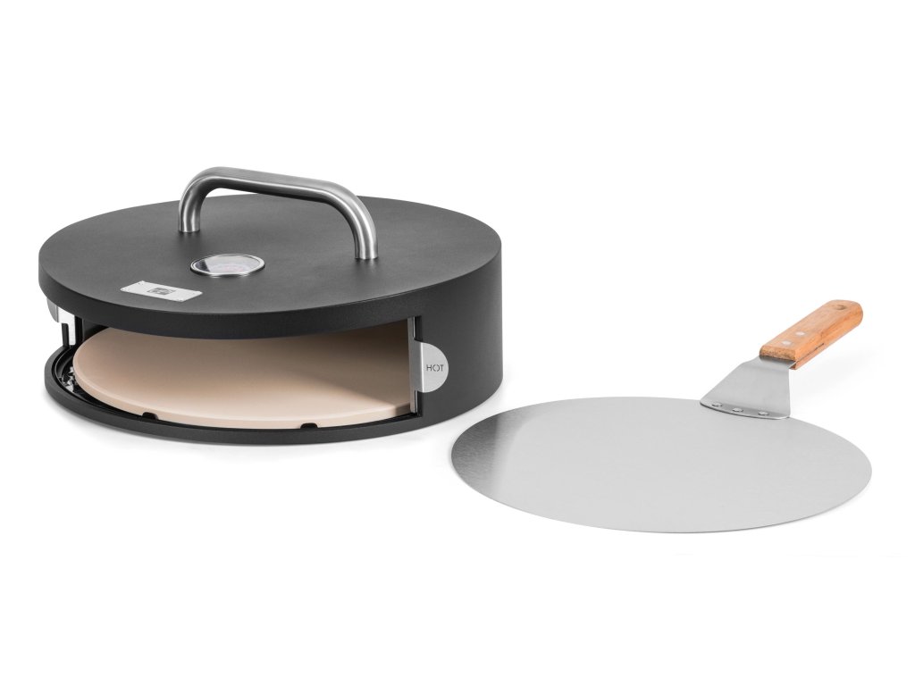 Tělo pece je vyrobené z odolného plechu, zatímco vnitřní vložka z nerezové oceli. Ta pomáhá udržet vysokou teplotu uvnitř pece. Posuvná dvířka nepropustí žádné teplo, v peci se tak vytvoří správná cirkulace vzduchu, která je klíčem k dokonale upečené pizze. Díky teploměru ve víku máte navíc vždy přehled, zda je pec dostatečně nahřátá.
