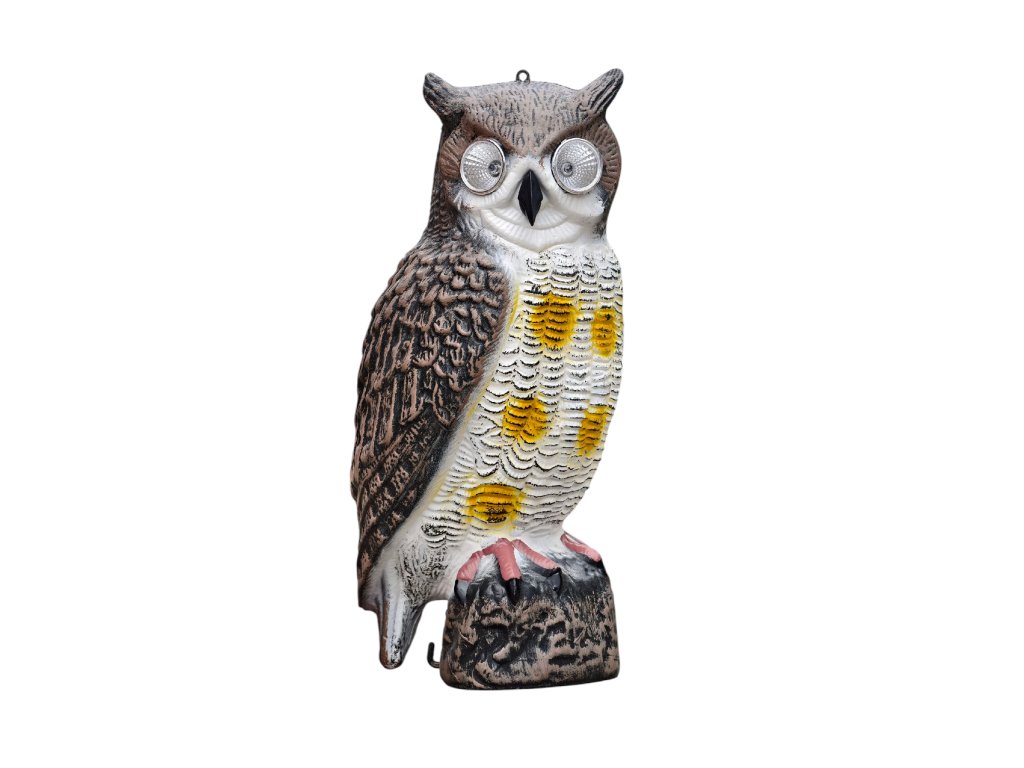 Dokonalý model dravého ptáka, v očích má úmístěny žárovky solárně dobíjené. Účinně vystraší ptáky a hlodavce. Model sovy je vhodný k zabezpečení a ochraně oblastí, jako jsou pole, sady, vinohrady.