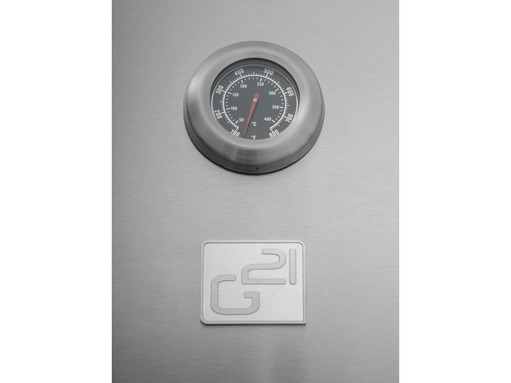 Nerezový gril G21 Argentina je opatřen dvouvrstvým odklápěcím víkem pro zajištění optimální teploty při grilování. Teploměr, prakticky zabudovaný ve víku, vám dá přehled o aktuální teplotě pod víkem, takže se nemusíte bát spáleného nebo naopak nedopečeného masa.