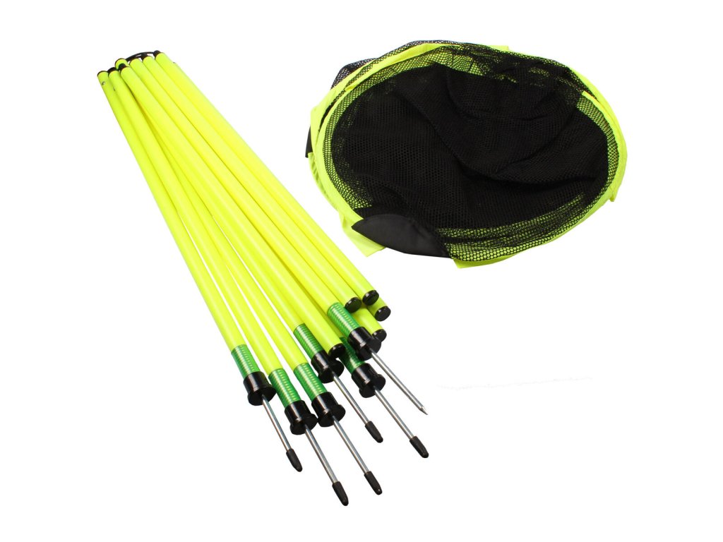 Merco Pop Up Dummy je ideální tréninková pomůcka na fotbal pro všechny trenéry a fotbalové kluby. Slouží k nácviku přesnosti přímých kopů, herních situací při zahrávání trestných kopů a zároveň i jako tréninková pomůcka pro fotbalové brankáře při těchto situacích. Figuríny jsou vyrobeny z odolné síťoviny, která odolává i silnějším nárazům míče. Sada dále obsahuje šest skládacích plastových tyčí s pružinou a hrotem pro upevnění do země. Součástí je i praktický polyesterový vak pro snadné uskladnění a přemístění mezi tréninky. - sada: 3x skládací figurína, 6x skládací tyč - materiál: PVC, polyester, ocel - pro použití do země - celkové rozměry po složení (bez hrotů): 190 x 65 cm - délka hrotu: 12 cm - hmotnost jedné figuríny: cca 1,3 kg - rozměry síťované figuríny: 130 x 60 cm - tyč s pružinou: 160 cm - průměr tyče: 25 mm - hmotnost balení: 4 kg - rozměry balení: 95 x 55 x 10 cm - součástí praktický vak