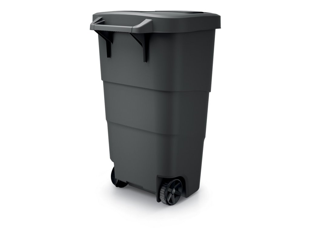 Popelnice s objemem 110 l. Těsnící recyklované víko se západkou proti nechtěnému otevření. Kolečka a madlo pro snadnou manipulaci. Hladký povrch vnitřní části popelnice pro jednoduché čištění.