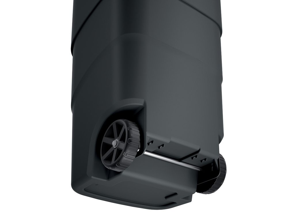 Do popelnice Prosperplast Wheeler s objemem 110 l se vejde velké množství odpadu. Je vybavená dobře těsnícím víkem. Díky němu neucítíte nepříjemné pachy vyhozených věcí, i když projdete kolem popelnice. Na recyklovaném víku navíc najdete praktickou západku. Pokud venku fouká silný vítr, zabrání nechtěnému otevření popelnice. Nemusíte se tedy obávat, že by se vám její obsah vysypal.