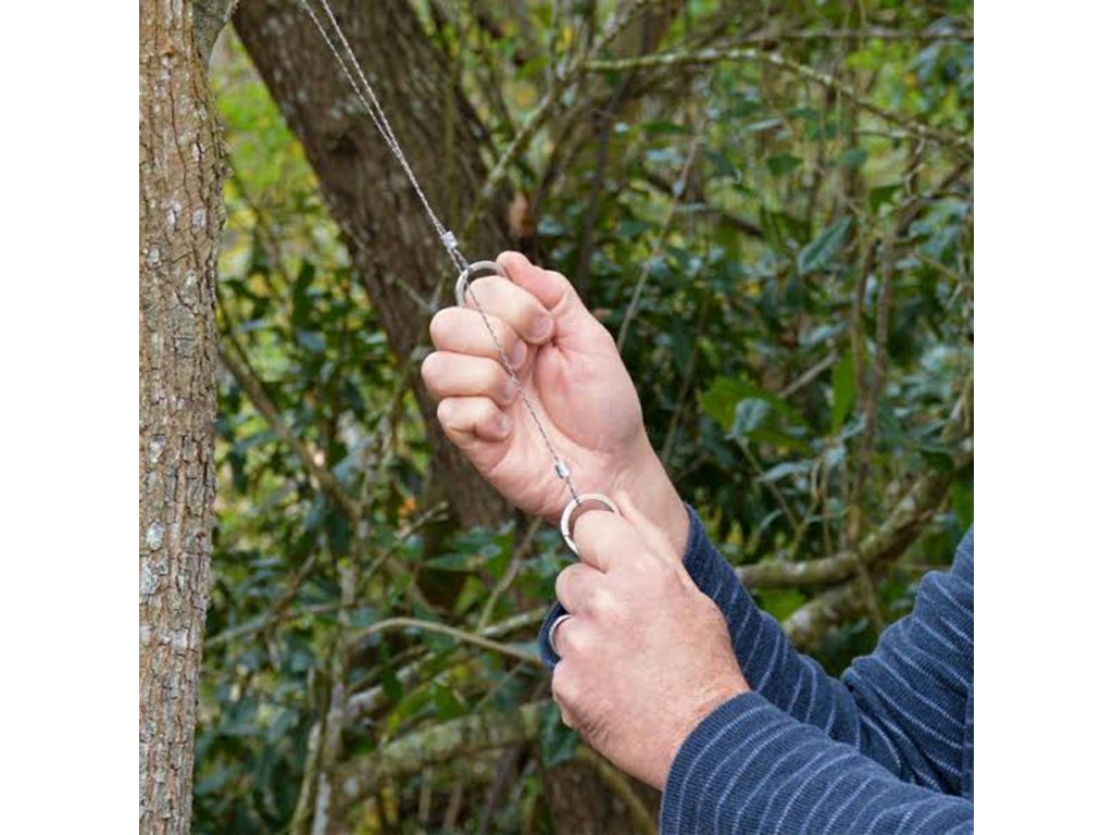Strunná ruční pila malých rozměrů (ocelová šňůra), survival, vhodná na nošení v peněžence, takže ji budete mít vždy u sebe pro případ v případě nouze.