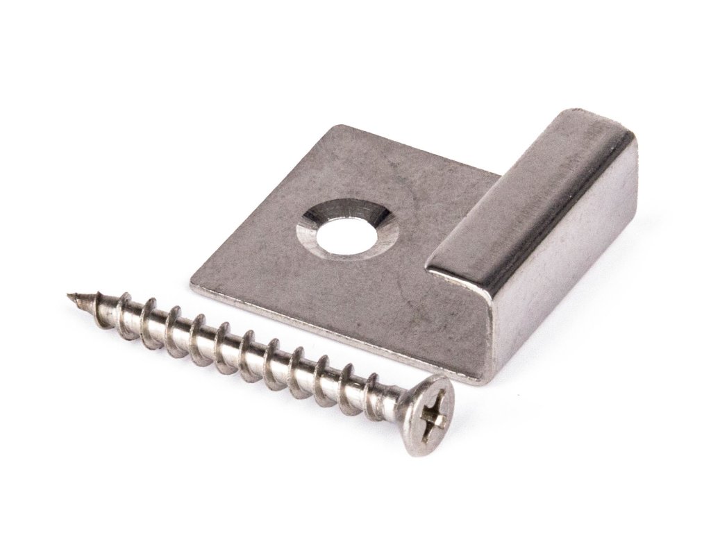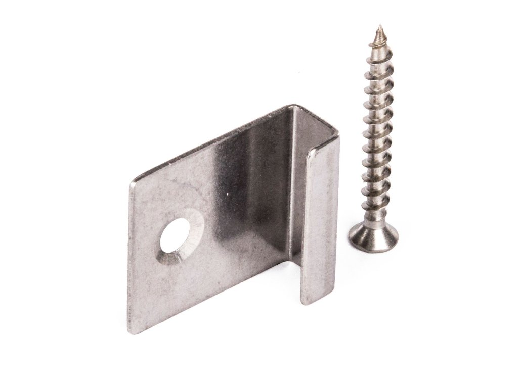Příchytka terasového prkna komplexního podlahového systému G21 se používá na první a poslední řadu WPC prken. Používá se v každém bodě, kde dojde ke křížení podkladového hranolu s terasovým prknem.
