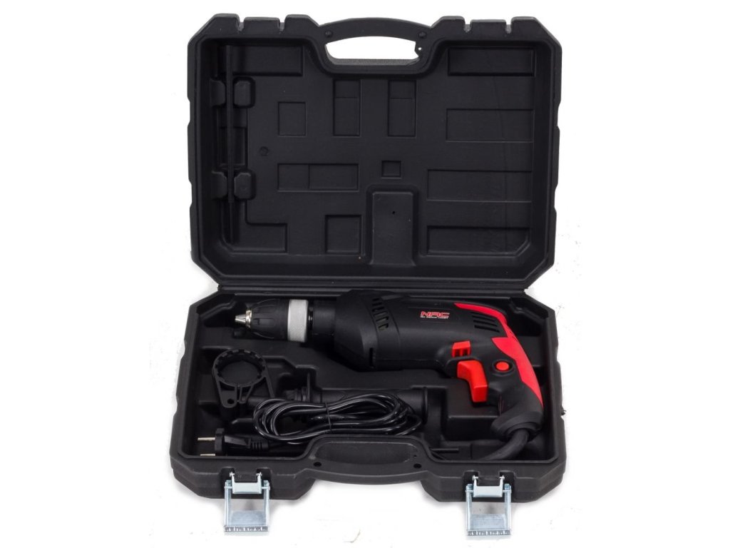 - Výbava: přídavná rukojeť pokrytá protiskluzovým materiálem, zámek nepřetržitého provozu, zarážka vrtání, hloubkoměr, přepravní pouzdro