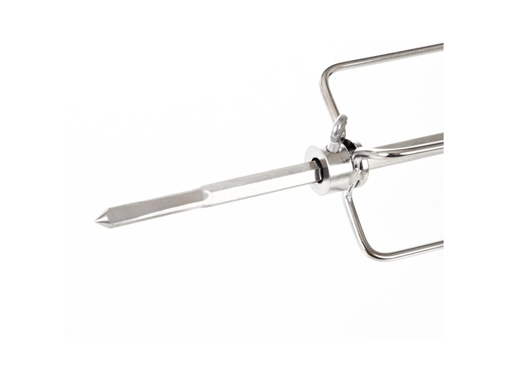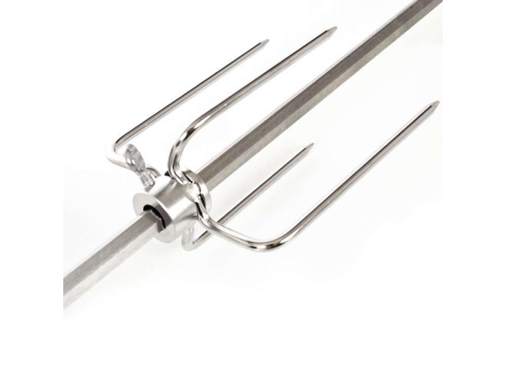 Grilovací jehla s motorem je vyrobena z nerezové oceli a z obou stran je opatřena čtyřmi jehlicemi s aretačními šrouby, díky kterým si můžete jehlice nastavit podle vlastní potřeby.