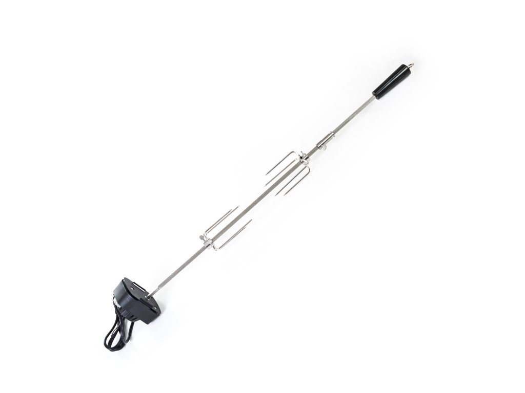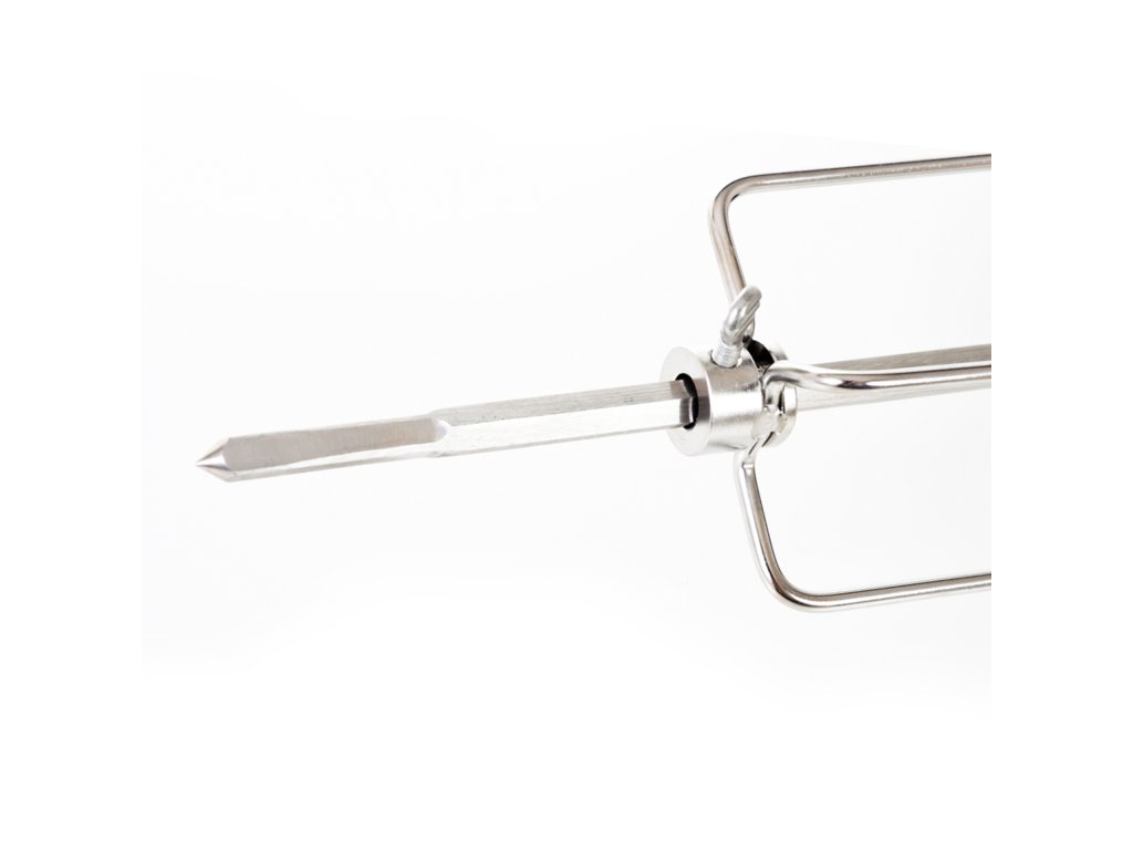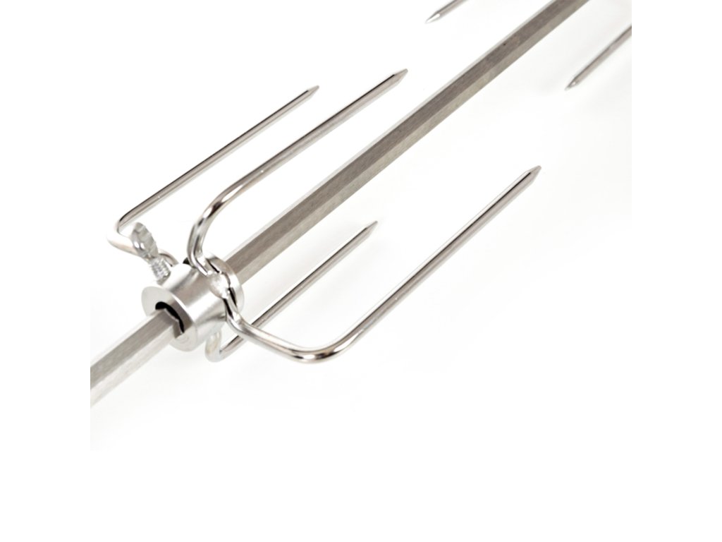 Grilovací jehla s motorem je vyrobena z nerezové oceli a z obou stran je opatřena čtyřmi jehlicemi s aretačními šrouby, díky kterým si můžete jehlice nastavit podle vlastní potřeby.