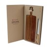 Moderní a esteticky provedené prkénko a krájecí nůž uspokojí každého, i toho nejnáročnějšího zákazníka. Prkénko má drážky, díky kterým drobky padají na dno. Robustní nůž je vyroben z akáciového dřeva a nerezové oceli.