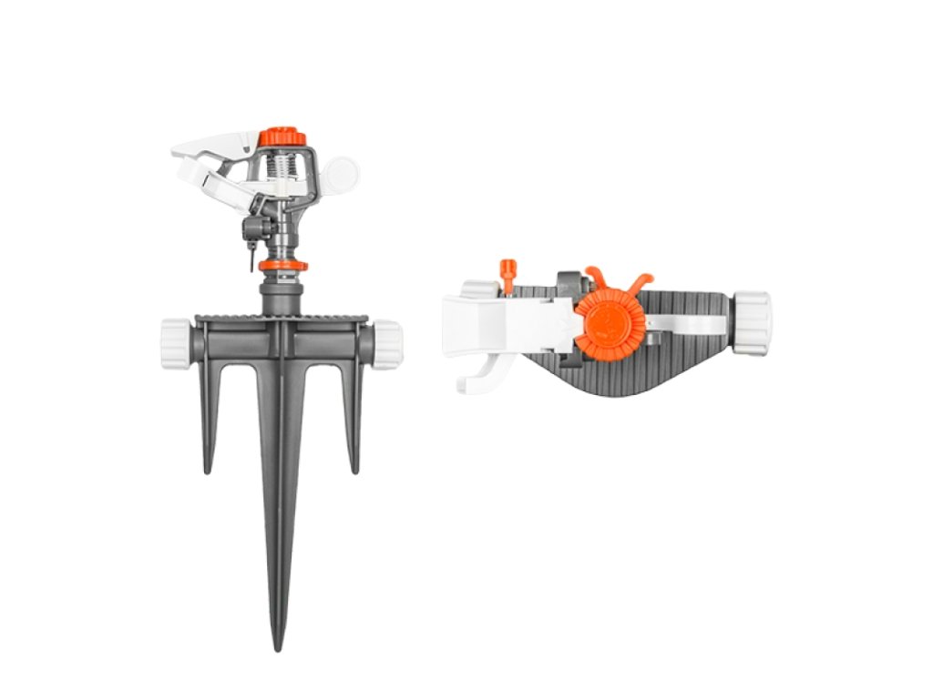 Zahradní pulsní postřikovač na trojzubci pro upevnění do země. Ideálním pro zavlažování i větších zahrad nebo trávníků. Postřikovač je vybaven plynulou regulací průtoku vody i plochy rozptylu.