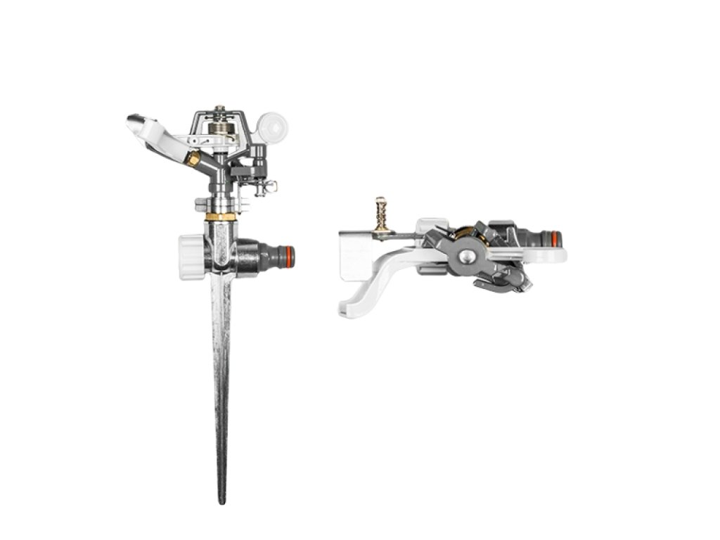 Zahradní pulsní postřikovač na kovovém bodci. Ideálním pro zavlažování i větších zahrad nebo trávníků. Postřikovač je vybaven plynulou regulací průtoku vody i plochy rozptylu.