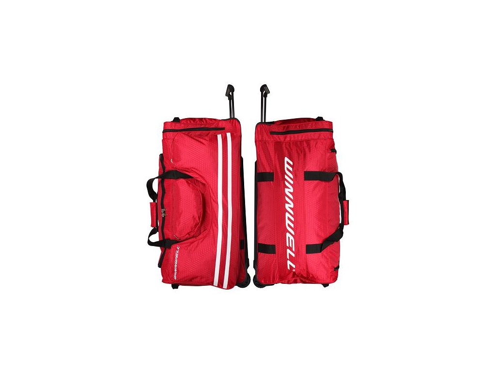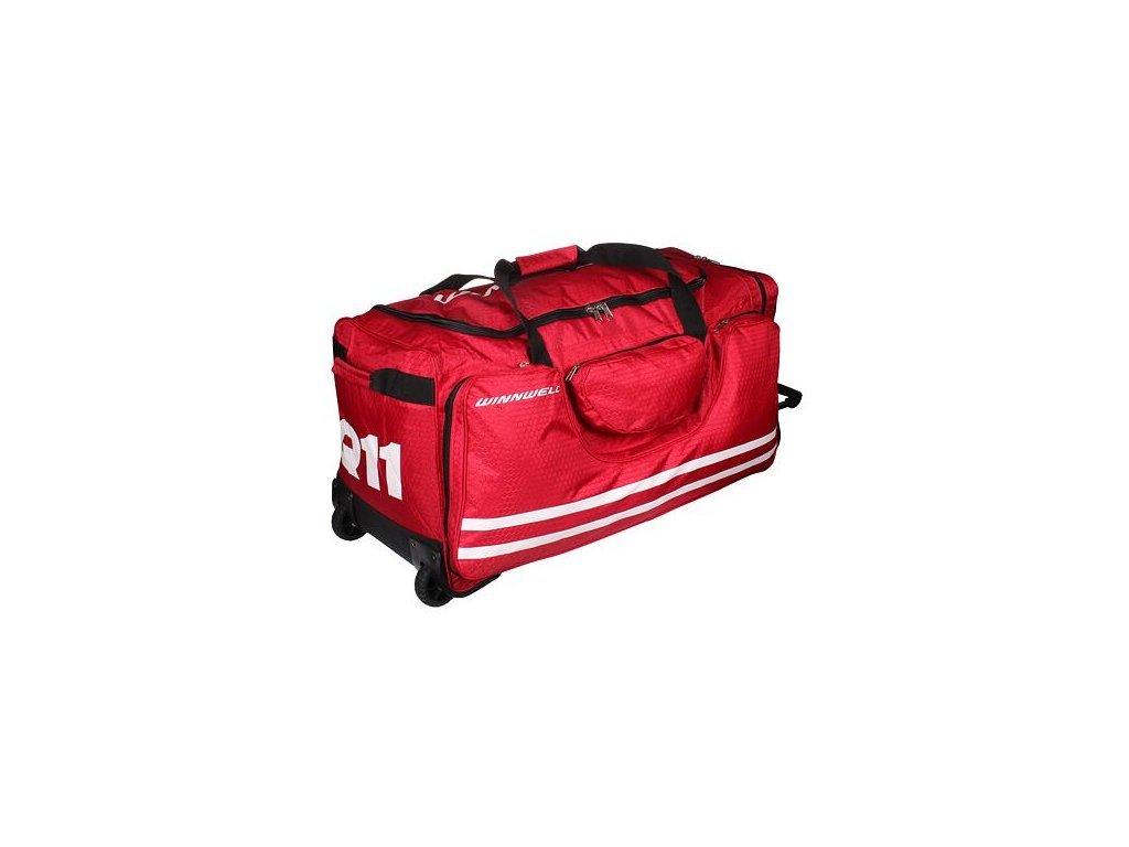 Hokejová taška Winnwell Q11 Wheel Bag je nová odolná taška na kolečkách vyrobená z pevného nylonu a je nástupcem původní oblíbené série tašek Q9. Model Q11 je dostupný tradičně ve velikosti junior 36" a senior 40". Základ tašky tvoří prostorný hlavní panel s otvorem ve tvaru "U", který umožňuje pohodlné vkládání kompletní hráčské výstroje. Konstrukce tašky je zpevněna plastovým dnem a ližinami. Na boční straně jsou dvě kapsy, kam lze odděleně umístit brusle a mezi nimi je prostřední kapsa pro drobnosti. Boční kapsa má v horní části síťovaný materiál pro dokonalé vysychání a vzdušnost. Teleskopické madlo zapuštěné v pevném rámu a dvě větší terénní kolečka zajistí pohodlné cestovaní a přenášení. Je možné využít i klasické popruhy pro nošení tašky v rukou. Q11 Wheel Bag SENIOR: - vnitřní teleskopická rukojeť - dvě velká terénní kolečka pro snadnou přepravu - taška vyrobena z pevného nylonu - přední a boční kapsy - otevírání horního panelu ve tvaru písmene U - rozměry senior: 40" x 20" x 18" (100 x 50 x 45 cm) - hmotnost: 6 kg