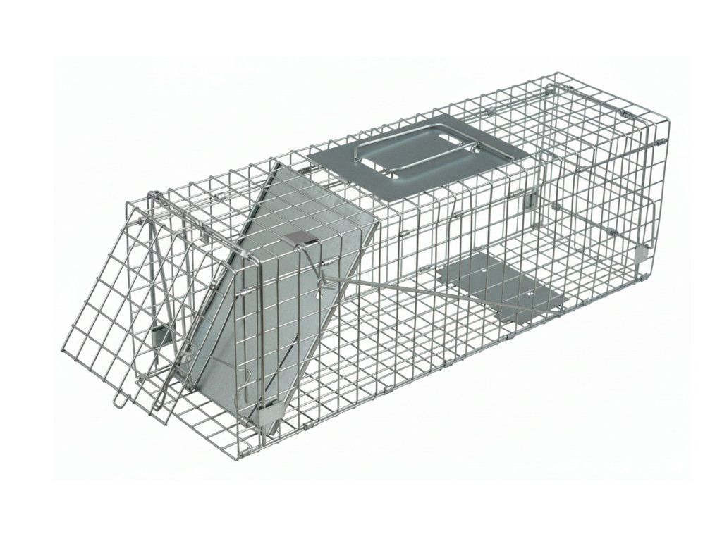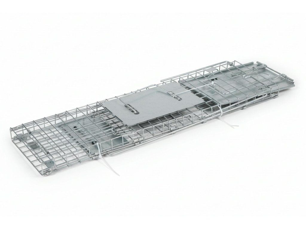 Robustní kovová klec určená k humánnímu odchytu divokých zvířat, jako jsou kuny, lišky, tchoři, toulavé kočky nebo mývalové. Konstrukce je vybavena citlivým nášlapným mechanismem, který bezpečně uzavře dvířka v momentě, kdy zvíře vstoupí dovnitř, aniž by mu jakkoli ublížil.