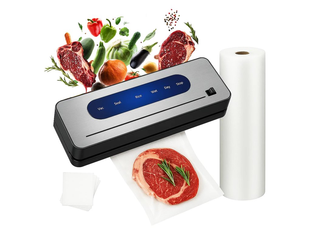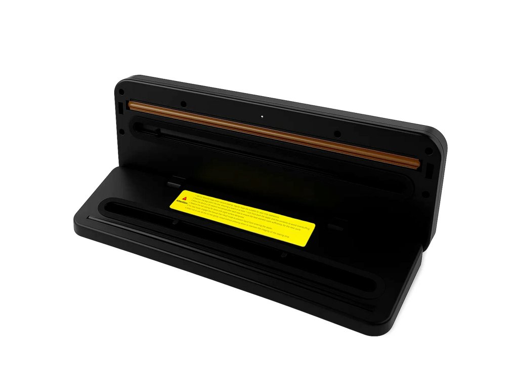 Vakuová svářečka s řezačkou fólie, která umožňuje snadné přizpůsobení rozměrů sáčku balenému produktu. Rozměry: 35,6 x 11 x 5 cm Výkon: 120 W Sací výkon: cca 62 kPa Obsahuje 50 fóliových sáčků zdarma!