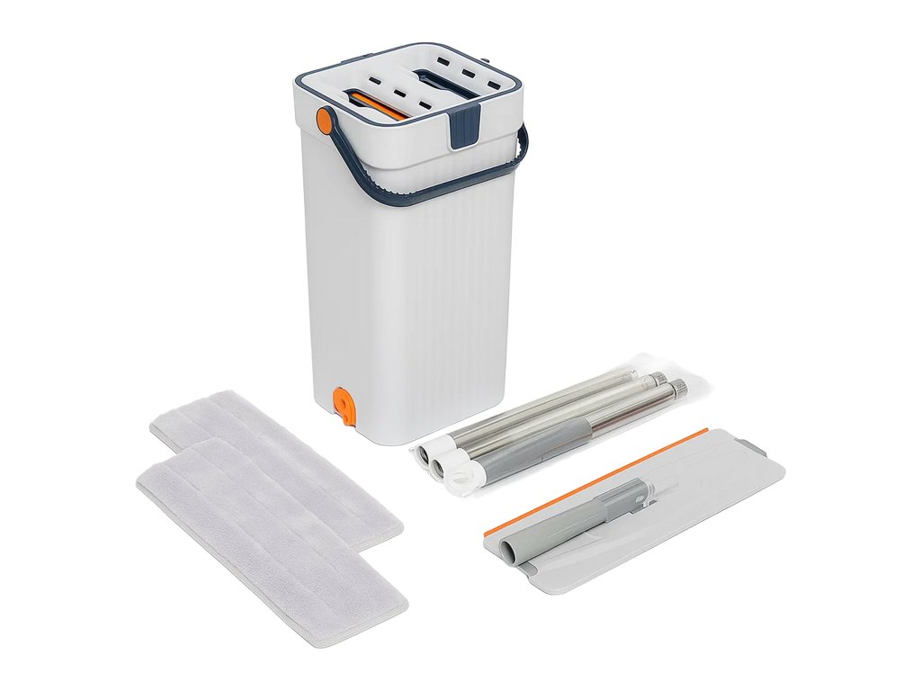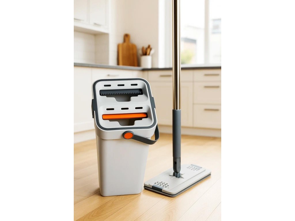 PLOCHÝ MOP Q8E3 S DVOUKOMOROVÝM KYBLÍKEM, 2 NÁPLNĚ