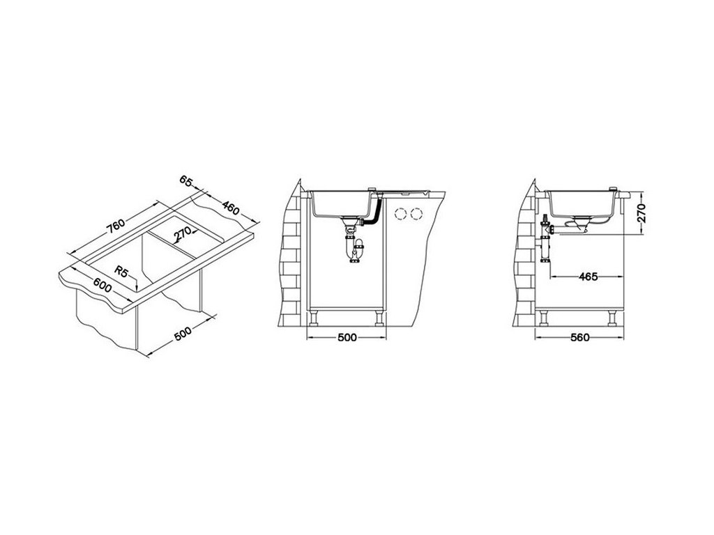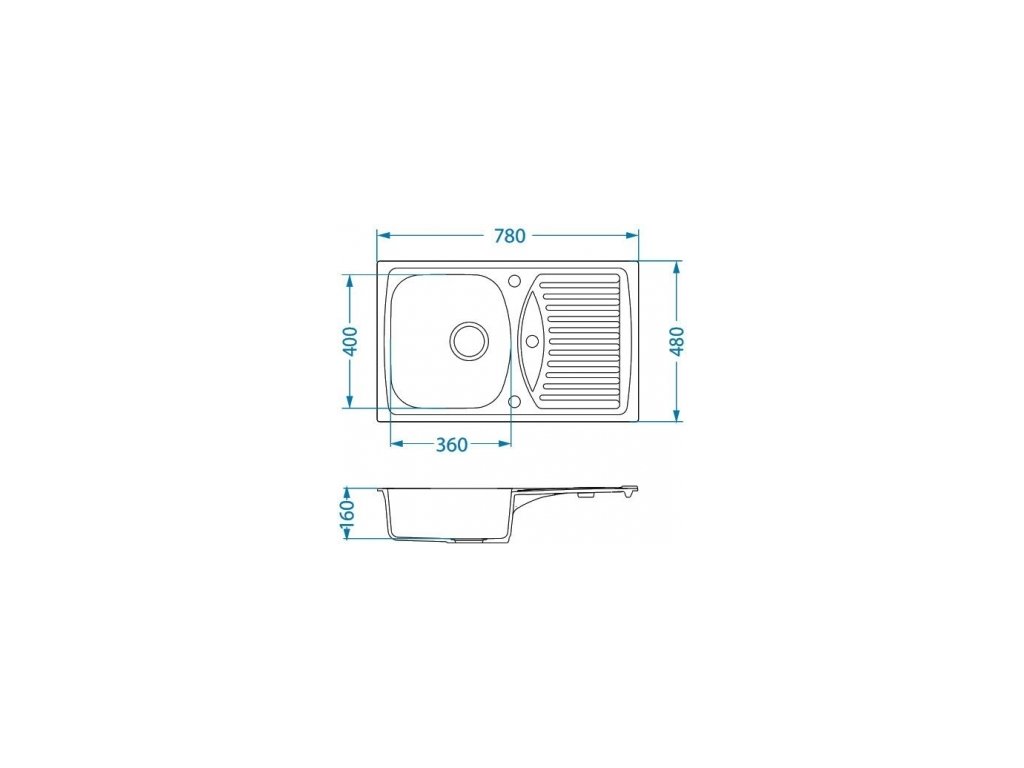Rozměry: 780 x 480 mm, vaničky: 360 x 400 x 160 mm, pro skříňku: od 500 mm, výpusť: 92 mm, příslušenství: pop-up sifon s odbočkou na myčku, sítko 3 1/2", montážní příslušenství