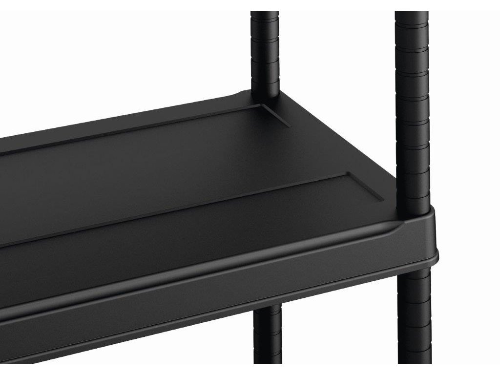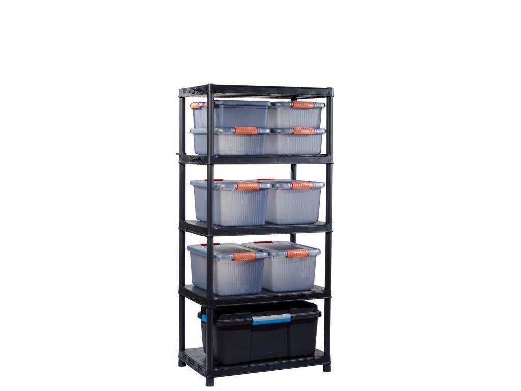 Skříň obsahuje celkem 5 polic s extrémní nosností, které unesou výrazně těžší předměty všeho druhu. Lze ji tedy využít pro skladování dílenského nářadí či zahradnických potřeb, kdy přijde vhod pro uložení náčiní, které by se jinam nevešlo. Regál rovněž můžete přimontovat na zeď pro větší stabilitu. Pro více úložného místa je regál vybavený pojezdy pro boxy typu Tribac (Scuba), do kterých můžete uschovat nejrůznější nářadí. Díky svému provedení v univerzální černé barvě vhodně doplní každý prostor.